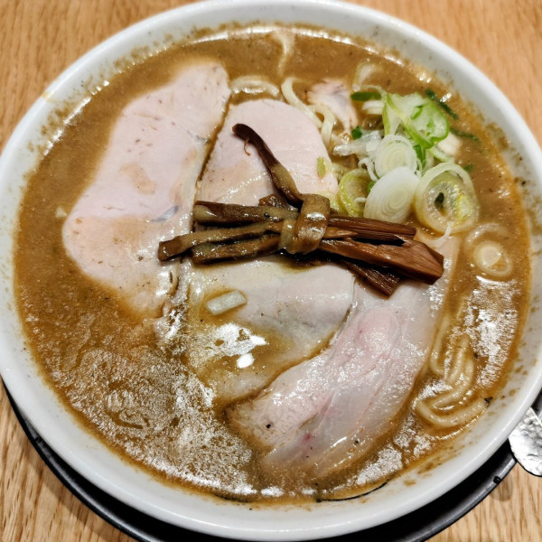 東京都千代田区丸の内1-9-1 東京駅一番街 B1Fマップで見るこいくちの超ド濃煮干出汁のシャバ系スープは煮干粉もガッツリで甘味が強くこれぞ津軽の味。麺は加水やや高目の中太ウェブ麺でスープと相性抜群なもちもち食感。デフォでもチャー大量で旨し。